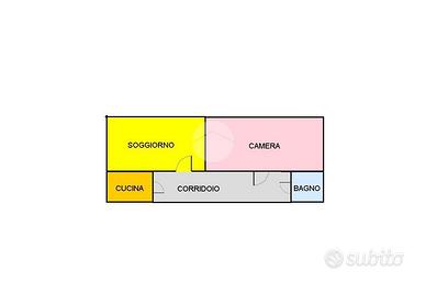 La soluzione è così disposta: entrando una zona giorno con camino, divano letto e cucinotto, proseguendo una camera da letto matrimoniale e un bagno con doccia.