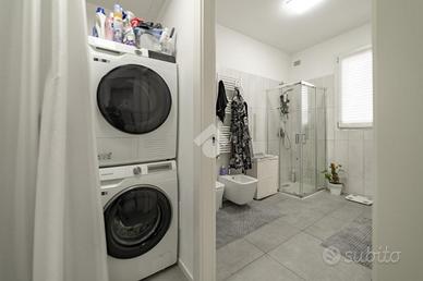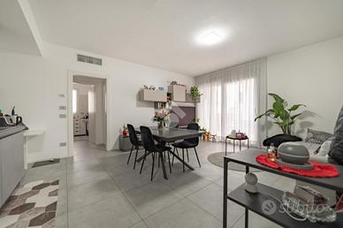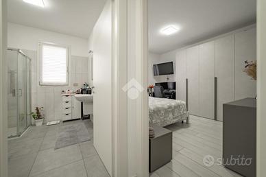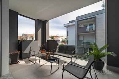 Nella frazione di Paderno Dugnano denominata Cassina Amata, proponiamo un favoloso bilocale inserito in un piccolo contesto condominiale composto da due palazzina circondate dal verde, caratterizzato dall'estrema tranquillità e dall'utilizzo di tutte le tecnologie disponibili al fine del raggiungimento della prestazione energetica "edificio ad energia quasi zero". Posta al piano primo su un totale di due piani, con doppia esposizione (sud-est), la soluzione si presenta con ingresso direttamente sulla zona giorno composta da cucina a vista sul soggiorno con grandissima porta-finestra scorrevole per accedere al terrazzo coperto, comodamente sfruttabile come seconda zona pranzo / relax nella bella stagione; attraverso il disimpegno si accede alla zona notte composta da una rientranza sfruttata per il posizionamento di lavatrice ed asciugatrice, camera matrimoniale con ulteriore porta finestra che permette l'accesso ad un secondo balcone di dimensioni più contenute e bagno finestrato con ampia cabina doccia. L'appartamento si presenta naturalmente in ottime condizioni, in quanto edificato circa 3 anni fa con tutti gli accorgimenti edilizi ed impiantistici che hanno permesso il raggiungimento della classe energetica "A3" con un IPE particolarmente contenuto ed idoneo per l'ottenimento, qualora fosse necessario, di un mutuo "green" a condizioni molto più vantaggiose. L'appartamento presenta le seguenti dotazioni: * impianto di ventilazione meccanica controllata con recupero del calore; * impianto solare fotovoltaico da 19 KW a servizio delle parti comune e private che permette un risparmio di circa 20.000 Kw/h all'anno; * impianto di riscaldamento a pavimento e produzione di acqua calda sanitaria con pompa di calore collegata all'impianto fotovoltaico; * impianto di climatizzazione canalizzato; * serramenti in PVC.L'unità abitativa presenta inoltre porta blindata, parapetti dei balconi in cristallo anti-sfondamento, pavimentazione ceramica ed in grés ed il c