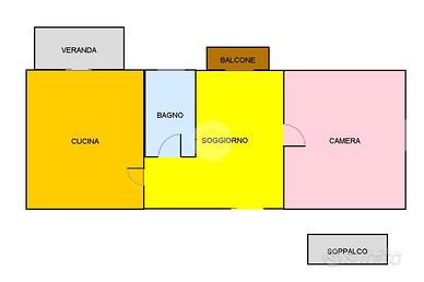 L'immobile ha una superficie commerciale di 60 mq ed è composto da una comoda cucina con veranda annessa, un soggiorno, una camera da letto matrimoniale, un bagno con doccia e un soppalco.