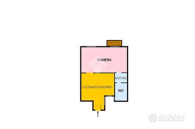 ingresso su cucina/soggiorno con finestra, una camere da letto con balcone e finestra, anti bagno e bagno con finestra.
