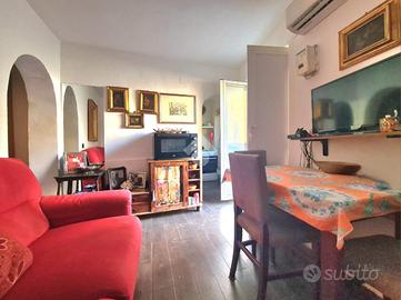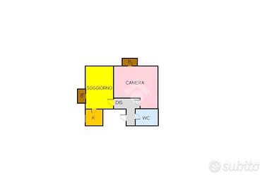 L'immobile si presenta in discreto stato e si compone di ingresso su disimpegno che divide la camera da letto, il wc-doccia ed il soggiorno con annesso cucinotto; presenti due balconi.