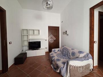 Ingresso su soggiorno con balcone, cucina abitabile finestrata e camera da letto con soppalco. Bagno con areazione forzata e ripostiglio.