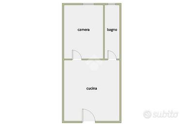 Ingresso su cucina soggiorno, camera da letto finestrata e bagno finestrato.