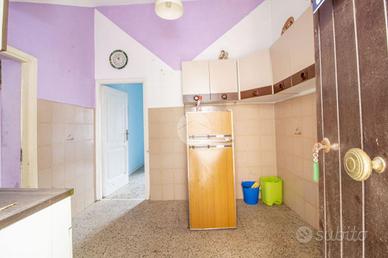 Totalmente da ristrutturare con gli infissi interni in vetro singolo, le persiane il portone in legno, il pavimento in marmittoni che restaurato contraddistingue l'immobile.