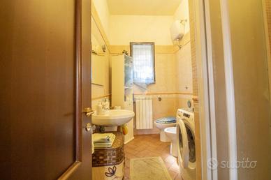 Immerso nella quiete della suggestiva campagna della Sabina Romana, nel comune di Palombara Sabina e più precisamente in Strada di Fonte Poeta, proponiamo in vendita un grazioso appartamento in villa con posto auto. L'accesso alla proprietà avviene tramite un cancello pedonale condiviso con le altre unità abitative, che conduce alla corte pavimentata della villa edificata negli anni '70, oggi suddivisa in tre appartamenti e circondata da un ampio giardino condominiale di circa 4.000 mq, il quale è dotato di acqua e allaccio alla fornitura elettrica. Una parte di terern L'immobile, un accogliente bilocale situato al piano terra, offre una superficie calpestabile di circa 39 mq ed è composto da una luminosa zona giorno con angolo cottura, una camera da letto e un bagno finestrato con box doccia. Caratteristiche dell'immobile: L'appartamento si presenta in buone condizioni generali ed è dotato di riscaldamento autonomo con termosifoni alimentati a GPL, impianto di climatizzazione e predisposizione per canna fumaria/camino. L'approvvigionamento idrico è diretto, mentre la fossa biologica è condivisa con le altre unità. Gli infissi interni sono di recente installazione, in PVC con doppio vetro, mentre quelli esterni e il portone d'ingresso sono blindati, garantendo comfort e sicurezza. A valorizzare ulteriormente la proprietà troviamo una corte esterna privata di circa 47 mq, completamente pavimentata e accessibile direttamente dalla zona giorno, ideale per momenti di relax all'aperto. Il posto auto completa la soluzione, rappresentando uno dei principali punti di forza dell'immobile. La soluzione è perfetta per chi desidera vivere in un contesto tranquillo e verdeggiante, senza rinunciare alla comodità dei collegamenti: la posizione, infatti, pur essendo immersa nella campagna, non è isolata e dista meno di 15 km dalla stazione ferroviaria di Pianabella di Montelibretti e dalla via Salaria, consentendo un facile accesso a Roma. Il centro del paese si trova a circ