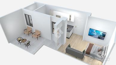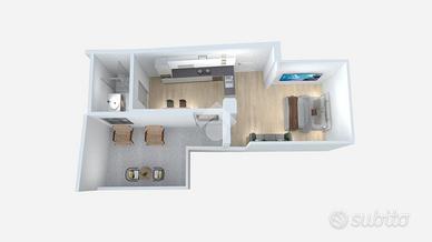 La disposizione interna comprende: una camera da letto, un bagno e la cucina.