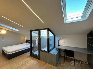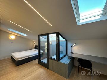 Nel cuore del centro storico di Parma, proponiamo in locazione un elegante appartamento signorile di 70 mq, situato all'ultimo piano di un edificio storico del 1800. L'immobile, recentemente ristrutturato con materiali di pregio, offre un perfetto connubio tra il fascino antico e il comfort moderno. Gli interni sono arredati con mobili contemporanei e dotati di tutti gli elettrodomestici necessari (Asciugatrice, lavastoviglie, forno a microonde 2 TV Samsung 4K da 43' solo per citarne alcuni). Il riscaldamento a pavimento garantisce un ambiente accogliente durante tutto l'anno. L'appartamento si sviluppa su due livelli: al terzo piano si trovano la zona giorno ed il bagno, mentre al quarto piano si accede tramite scala interna alla camera da letto e a un delizioso terrazzino a tasca, ideale per momenti di relax. La presenza dell'ascensore e dell'aria condizionata aggiunge ulteriore comodità a questa raffinata soluzione abitativa. In classe energetica A1 per ridurre i consumi al minimo, l'appartamento dispone anche di impianto di addolcimento dell'acqua, impianto di microfiltrazione dell'acqua, impianto canalizzato dell'aria condizionata, WI-FI ultraveloce con tecnologia FttH.