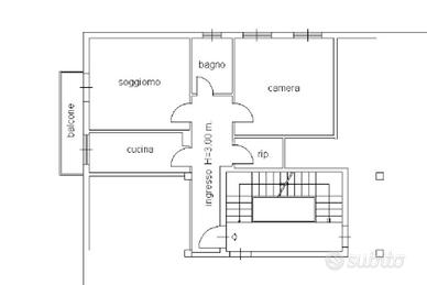 L' immobile è composto da: ingresso, cucina, soggiorno con balcone, camera da letto matrimoniale, bagno con finestra e ripostiglio.