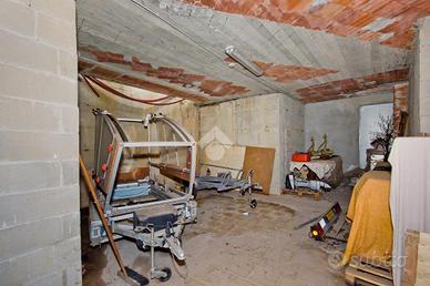 Al piano interrato, accessibile tramite scala interna, si trova una spaziosa tavernetta con bagno dotato di doccia. Dalla tavernetta si accede direttamente, tramite portoncino blindato, al box auto di circa 90 mq.