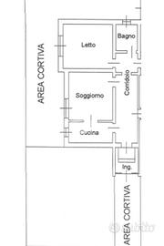 Proponiamo in vendita appartamento bilocale al piano terra con giardino, situato in un piccolo edificio di sole due unità abitative, realizzato negli anni Sessanta.