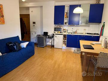 La disposizione interna prevede una luminosa zona living con cucina a vista, con accesso diretto al terrazzo, ideale per momenti di relax all'aperto; una spaziosa camera matrimoniale, anch'essa con affaccio sul medesimo spazio esterno, e un bagno finestrato.