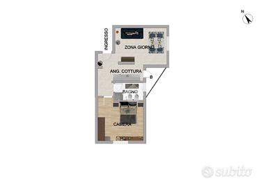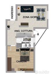L'appartamento, posto al piano basso, si compone di soggiorno con l'angolo cottura con accesso ad un piccolo balcone.