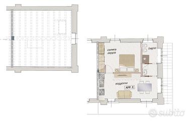 *APT. E: Bilocale al piano primo con balcone e sottotetto/sottotetto al piano 2° oltre a posto auto privato incluso nel prezzo - € 240.000