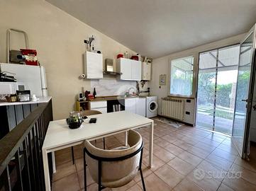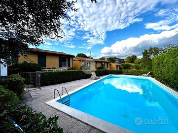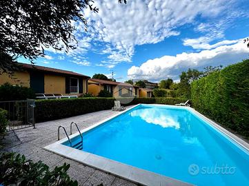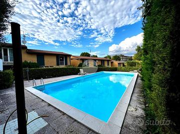 All'interno di un piccolo residence con piscina, in posizione collinare con panoramica vista lago, a poca distanza dalle rinomate località di Peschiera d/G e Sirmione. Proponiamo appartamento indipendente in stile villino così distribuito: dall'ingresso indipendente passando dal giardino privato si accede al soggiorno con angolo cottura, camera da letto matrimoniale attualmente adibita a salottino. Da una scala interna si accede al piano seminterrato dove si trova il bagno, un ulteriore stanza, l'autorimessa completamente pavimentata e dotata di una apertura vetrata che conduce all'area esterna, dove troviamo un ulteriore posto auto scoperto di pertinenza. L'abitazione è stata recentemente e completamente isolata internamente per garantire il massimo comfort abitativo in estate e in inverno, tutti i consumi sono autonomi e indipendenti. Il giardino esterno è stato completamente rifatto, dotato di impianto di irrigazione e arricchito da una nuova pergola dove trascorrere momenti di relax. L'alloggio sarà consegnato completo di cucina e impianto di climatizzazione. Questo immobile risponde a chi cerca una prima o seconda casa indipendente, in un contesto verdeggiante e tranquillo a poca distanza dal Lago. Ideale anche come investimento per locazioni turistiche grazie alla presenza della piscina condominiale.