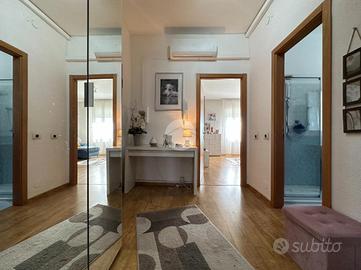L'immobile si presenta in ottime condizioni, grazie alla costante cura dei proprietari. La pavimentazione è in laminato effetto parquet di ottima qualità, con tonalità calde che donano eleganza all'ambiente. Gli infissi sono in PVC con doppio vetro, le tapparelle sono nuove, così come la porta blindata. Le porte interne sono di extracapitolato e l'appartamento è dotato di aria condizionata con pompa di calore installata da un anno.