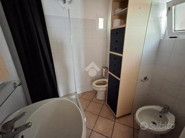 Segue un piccolo corridoio, collegando le varie stanze della casa: troverai un bagno ben rifinito e una camera matrimoniale luminosa, ideale per garantire il massimo del comfort.