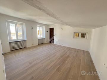 Eleganza Contemporanea nel Cuore Storico di Pinerolo Situato nell'esclusiva cornice di via Archibugieri, nel cuore pulsante del centro storico di Pinerolo, questo immobile rappresenta una rara sintesi tra il fascino dell'architettura d'epoca e l'avanguardia dell'abitare moderno. L'appartamento è inserito in un contesto condominiale signorile e si colloca al secondo nonché ultimo piano dello stabile, posizione privilegiata che garantisce massima privacy e una piacevole luminosità naturale in tutti gli ambienti. L'unità abitativa è stata oggetto di una ristrutturazione integrale e profonda ultimata nel 2026, un intervento mirato a valorizzare i volumi originari attraverso l'impiego di materiali di pregio e dotazioni tecnologiche di ultima generazione. L'ingresso principale apre direttamente su un'accogliente e spaziosa zona giorno living con cucina a vista, concepita come il fulcro conviviale della casa. Il layout attuale si completa con un ampio bagno finestrato, servito da un moderno box doccia, e una generosa camera da letto matrimoniale caratterizzata da dimensioni sopra la media. La vera peculiarità di questa proposta risiede nella straordinaria flessibilità della sua pianta originale: grazie a un progetto architettonico estremamente versatile, l'immobile si presta a interpretare diverse esigenze abitative, potendo essere vissuto come un ampio e arioso bilocale di rappresentanza oppure, con una semplice rimodulazione degli spazi interni, trasformarsi in un funzionale trilocale composto da zona giorno con cucina, camera padronale e una seconda camera da letto o studio. Il comfort abitativo è ulteriormente garantito dalla gestione autonoma del riscaldamento, che permette un controllo puntuale dei consumi, e da spese di gestione condominiale particolarmente contenute. Questa residenza rappresenta la scelta ideale per chi ricerca una dimora 'chiavi in mano' in una posizione strategica e silenziosa, perfetta sia come prestigiosa abitazione princi