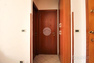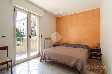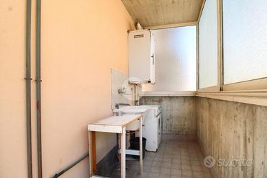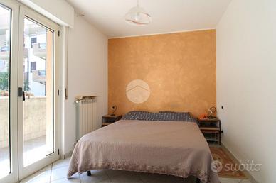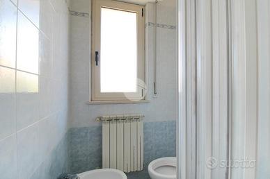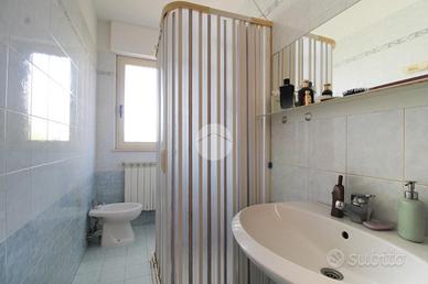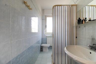 Attraverso un pratico disimpegno si accede alla camera matrimoniale, anch'essa con accesso al balcone, e ad un bagno finestrato dotato di box doccia.
