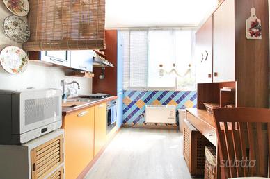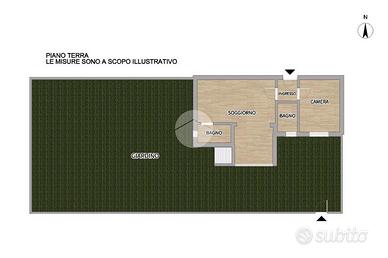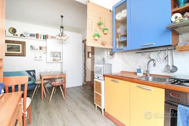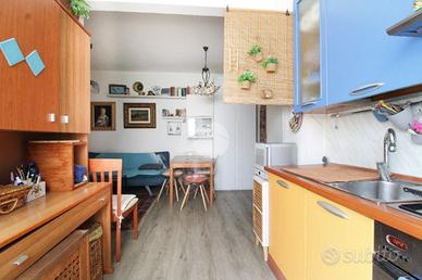 All'interno troviamo un accogliente soggiorno con angolo cottura, una camera matrimoniale ben illuminata, e due bagni finestrati: uno di servizio, l'altro con comoda doccia.
