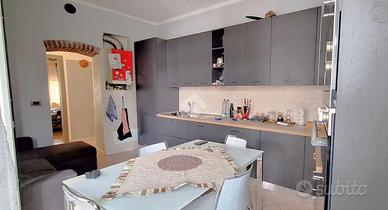 Ampio bilocale completamente ristrutturato situato sulla via principale del centro storico. Al primo piano, l'ingresso apre su un ampio disimpegno con mattoni e travi a vista, troviamo poi la zona giorno, composta dall'ampia cucina con porta finestra con accesso al terrazzino condominiale. Troviamo poi il bagno, finestrato con doccia, un comodo sgabuzzino con attacco per lavatrice, e infine, la camera da letto, molto ampia e luminossa, con un piccolo sfogo esterno che affaccia sul centro storico, con una bellissima vista sulla piazza e sul San Giorgio.