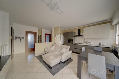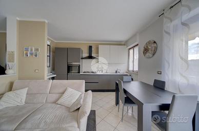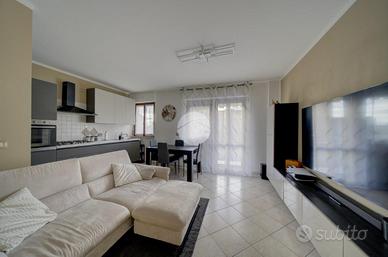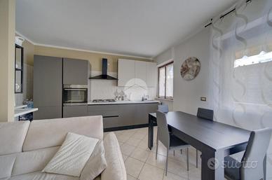 In palazzina moderna del 2005, priva di barriere architettoniche e servita da ascensore, appartamento situato al primo piano. L'alloggio è composto da ingresso su accogliente soggiorno con angolo cottura finestrato e con accesso ad un primo balcone, camera da letto matrimoniale, bagno finestrato con doccia e comodo ripostiglio al momento adibito ad angolo lavanderia. La zona giorno risulta pratica e ben distribuita, con angolo TV dotato di parete attrezzata ed uno spazio dedicato alla zona pranzo. La camera da letto matrimoniale, ampia e luminosa, dispone di un secondo balcone con affaccio sul cortile condominiale, dove si trova anche il locale caldaia. L'appartamento dispone di riscaldamento autonomo a pavimento, per una temperatura uniforme e piacevole in tutti gli ambienti. Completano la proprietà un box auto e una cantina, entrambi inclusi nel prezzo. La posizione è particolarmente favorevole grazie alla vicinanza a scuole, bar, supermercati e a tutti i principali servizi.