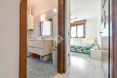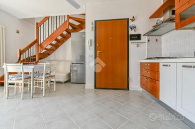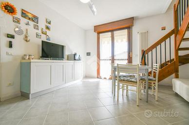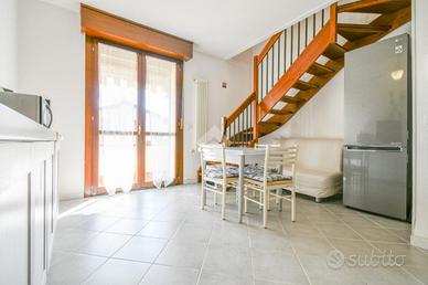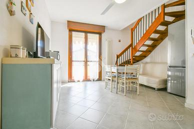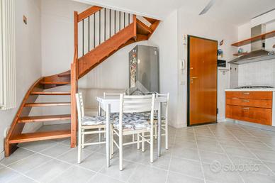 L'abitazione si sviluppa su due livelli e si compone di: ingresso su soggiorno con angolo cottura, camera matrimoniale, balcone e bagno con doccia. Tramite scala fissa si può accedere al piano mansardato ove è possibile ricavare una seconda camera da letto ed è presente un secondo bagno con doccia.