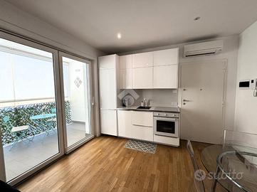 L'interno è caratterizzato da un luminoso soggiorno con angolo cottura che si apre su un comodo balcone, ideale per godersi il clima mite.