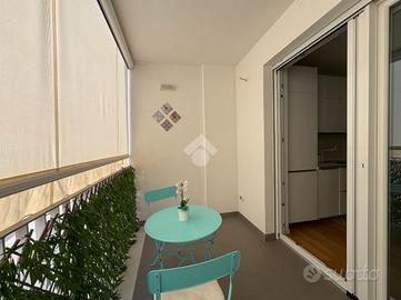 L'appartamento è arredato con raffinati dettagli, come il parquet 'Giordano' e infissi a taglio termico, e dispone di comfort moderni quali tenda da sole, zanzariere e pergolato.