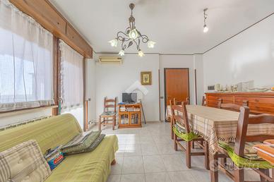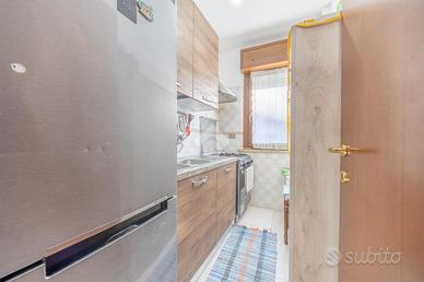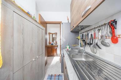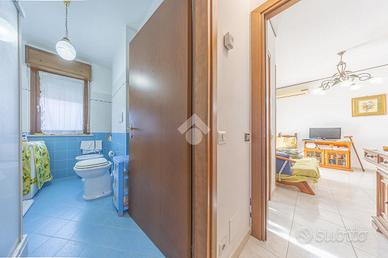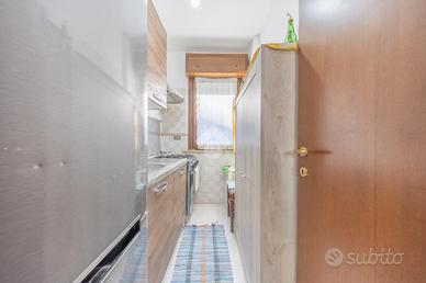 L'abitazione si apre su un luminoso soggiorno con accesso diretto al terrazzo abitabile, spazioso e perfetto per pranzi all'aperto o momenti di relax. La zona giorno è completata da un cucinotto separato, pratico e funzionale.