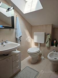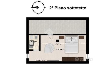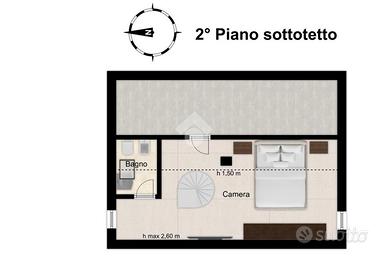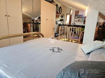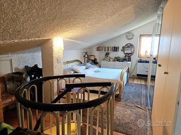 L'alloggio posto al piano primo è composto da un ingresso diretto sul soggiorno con angolo cottura, da cui si accede al terrazzo con vista mare ed un primo bagno finestrato dotato di box doccia; salendo al piano superiore mansardato, tramite una scala a chiocciola, troviamo la camera da letto matrimoniale ed un secondo bagnetto con piccola finestra a velux.