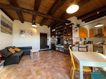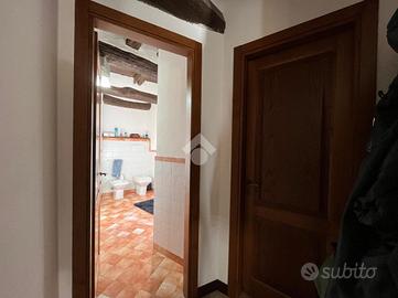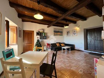 DESCRIZIONE: All'interno del centro storico del paese, in zona tranquilla e silenziosa, disponiamo di appartamento bilocale con ingresso indipendente, posto al piano terra. L'immobile è dotato di riscaldamento autonomo a metano, infissi in legno e doppio vetro, zanzariere e scuri in legno, pavimenti in gres porcellanato e travi in legno, che rendono l'abitazione calda ed accogliente. Nessuna spesa condominiale, immobile attualmente locato. Ideale come investimento.
