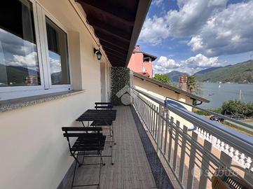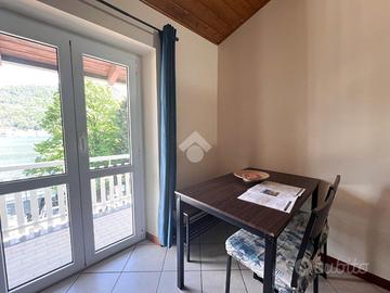 L'ingresso si apre sulla zona giorno della casa formata da un luminoso soggiorno con balcone, che gode di una meravigliosa vista lago, ed una cucina con finestra che permette anch'essa di un'incantevole veduta del panorama.