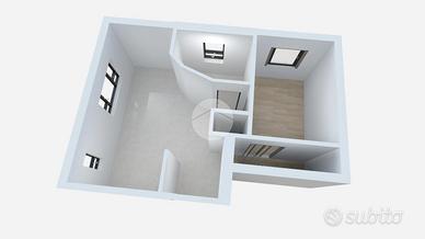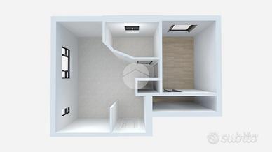 Attraverso un comodo disimpegno si accede alla zona notte, composta da una spaziosa camera da letto, luminosa e ariosa, e da un bagno finestrato, completo di tutti i servizi. Completa la proprietà una pratica lavanderia, perfetta per gestire le attività domestiche con discrezione e comodità.