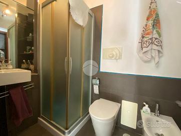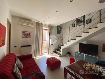 La composizione interna è la seguente : Ingresso in ampio salone con cucina , con accesso diretto al balcone oltre al bagno che serve la zona giorno, al secondo piano troviamo la camere da letto con bagno en suite, cabina armadio e un comodo ripostiglio, ideale come spazio di deposito o lavanderia. Posizione strategica, ben collegata.
