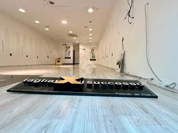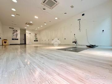 Il negozio è composto da un unico locale, con due ampie vetrate che garantiscono luminosità e visibilità.