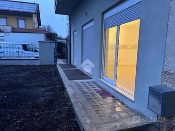 L'immobile è così composto: ingresso indipendente sul giardino privato, soggiorno con cucina a vista, camera matrimoniale e servizio finestrato con box doccia. Tramite scala interna accediamo al piano inferiore dove troviamo un locale taverna open space con secondo servizio ad uso lavanderia.