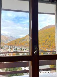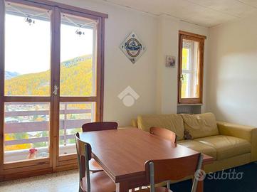 PRAGELATO - Situato in posizione soleggiata, al dodicesimo piano del condominio denominato 'La Pineta' dotato di doppia ascensore. L'ingresso all'appartamento avviene tramite portoncino blindato su di un corridoio che separa il soggiorno dalla camera da letto e dal bagno. Tutti gli ambienti sono dotati di doppi infissi e godono di vista panoramica su Pragelato e sulla Val Chisone. Il soggiorno, reso luminoso da una porta finestra ed una finestra, è dotato di cucina lineare, ampio armadio e divano letto matrimoniale. La camera da letto è arredata con un letto matrimoniale ed un letto singolo. Il bagno è dotato di lavatrice e box doccia.