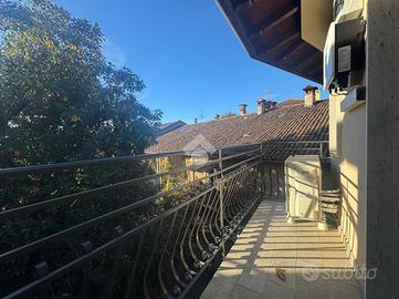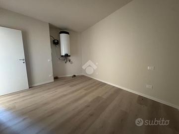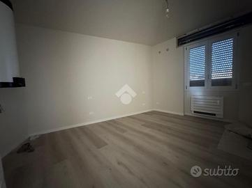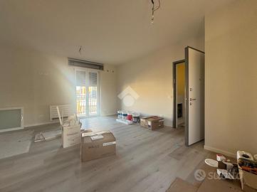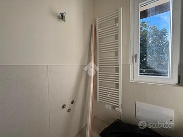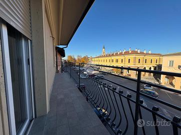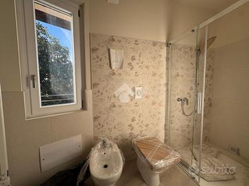 Due ampi balconi, uno che affaccia sulla piazza e uno piu privato. Bagno finestrato con doccia walk - in e sanitari sospesi.