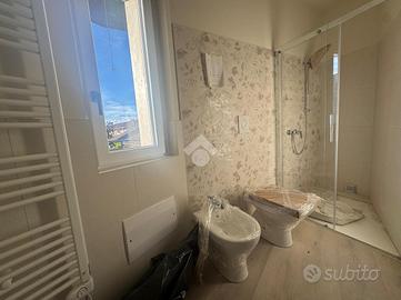 Due ampi balconi, uno che affaccia sulla piazza e uno piu privato. Bagno finestrato con doccia walk - in e sanitari sospesi.