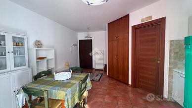 * Primo piano: luminosa zona giorno con soggiorno, bagno e angolo cottura, arredata con gusto moderno e funzionale.