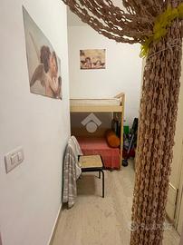 Entrando ritroviamo soggiorno con angolo cottura, corridoio che porta verso la zona notte dell'appartamento, dove si ha un ripostiglio, bagno fcon box doccia e proseguendo si arriva alla camera matrimoniale, con la possibilità di un letto in più a terra.