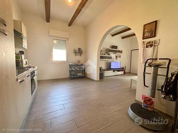 All'ingresso si accede direttamente all'ampio soggiorno con cucina a vista, un ambiente luminoso e ben organizzato, ideale per la vita quotidiana e per momenti di convivialità. La zona notte comprende una spaziosa camera da letto matrimoniale. Un comodo disimpegno conduce al bagno finestrato, completo di box doccia.