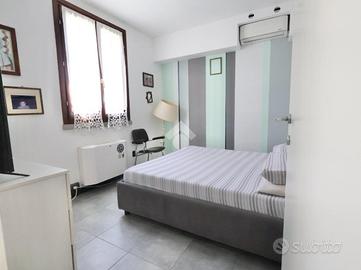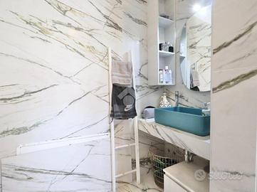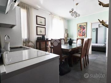 La composizione prevede: ingresso su soggiorno con angolo cucina a vista alimentata a induzione, disimpegno notte, camera da letto matrimoniale e bagno con doccia.