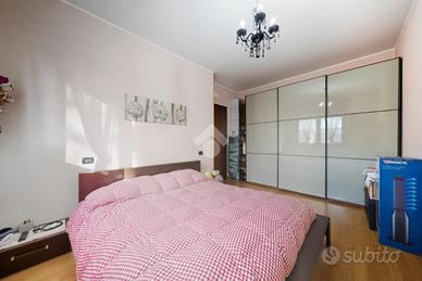 La zona notte comprende una camera da letto matrimoniale luminosa pavimentata con parquet in legno e un bagno moderno con box doccia.