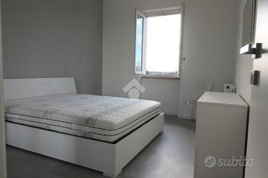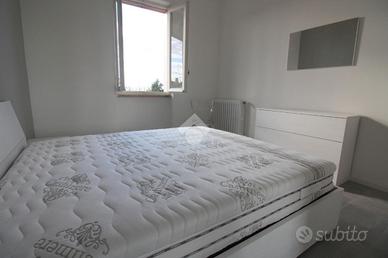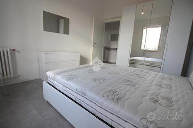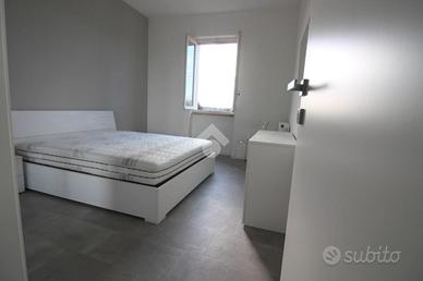Dal corridoio si accede al bagno finestrato, dotato di sanitari e box doccia e alla camera matrimoniale, dal taglio regolare facilmente arredabile, anch'essa luminosa per la presenza della finestra.