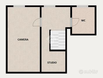 Al primo piano mansardato troviamo la zona notte composta dalla camera da letto matrimoniale, un bagno finestrato con doccia e un ulteriore spazio sfruttabile come studio/smartworking o semplicemente come ampio ripostiglio.