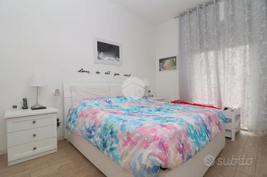 L'appartamento è al primo piano. La porta blindata apre ad un accogliente ambiente di passaggio che introduce gli habitat principali: la cucina è abitabile ed offre un primo balcone a cui si accede da ampia porta finestra con tapparella domotica. Il Living è ampio e funzionale, il punto dal quale gode di luce più generosamente è l'apertura esterna, che conduce al secondo balcone, spazioso e comunicante con la camera matrimoniale.