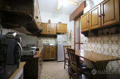 La cucina è abitabile e permette di pranzare comodamente al proprio interno, anch'essa fornita di porta finestra con uscita sul balcone.