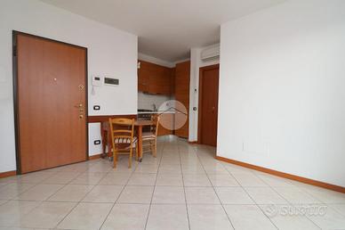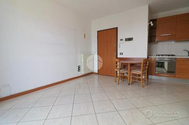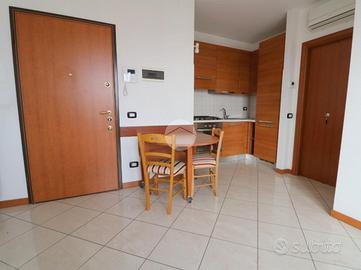 L'ingresso, dotato di porta blindata, conduce direttamente alla zona giorno composta da un luminoso soggiorno con cucinotto a vista. Gli ambienti, ben organizzati e funzionali, si affacciano su un comodo terrazzino esposto a est, ideale come spazio esterno da vivere nella quotidianità. L'abitazione è inoltre dotata di tenda da sole, zanzariere e impianto di aria condizionata, elementi che garantiscono comfort in ogni stagione. La zona notte, ben separata dalla zona giorno, comprende una camera da letto con doppia esposizione nord-est e doppia finestra e un bagno completo di doccia.