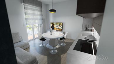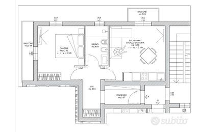 L'immobile è così suddiviso; ingresso, soggiorno con cucina a vista con balcone, camera da letto con balcone e bagno con box doccia.